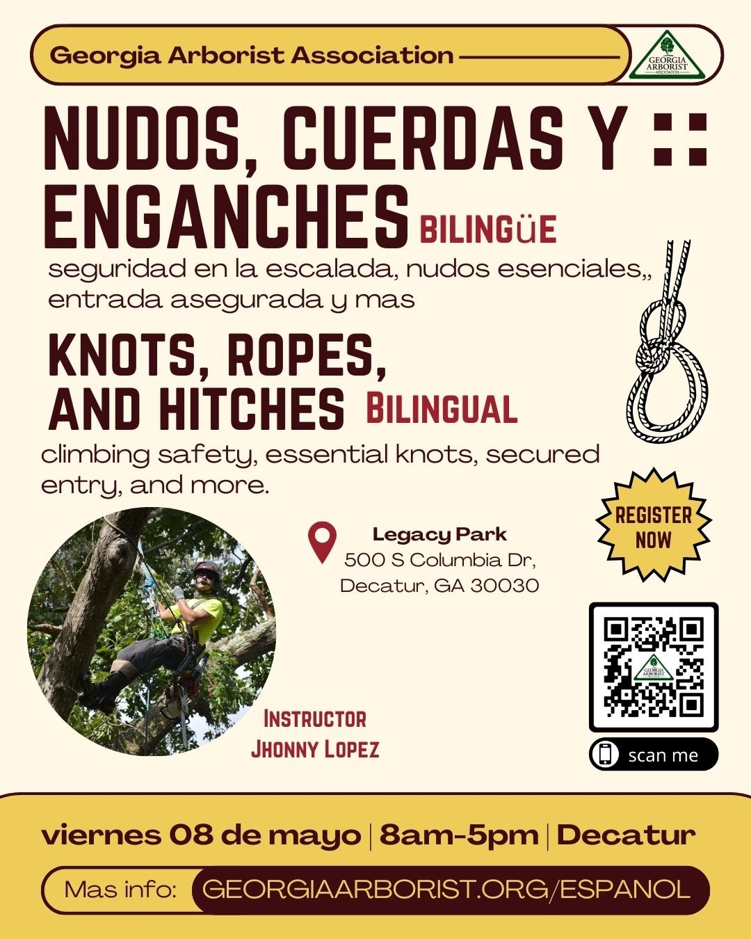 Curso 3: Nudos, cuerdas, enganches y seguridad | viernes 08 de mayo, 2026 | Legacy Park, 500 S Columbia Dr, Decatur, GA, 30030, United States